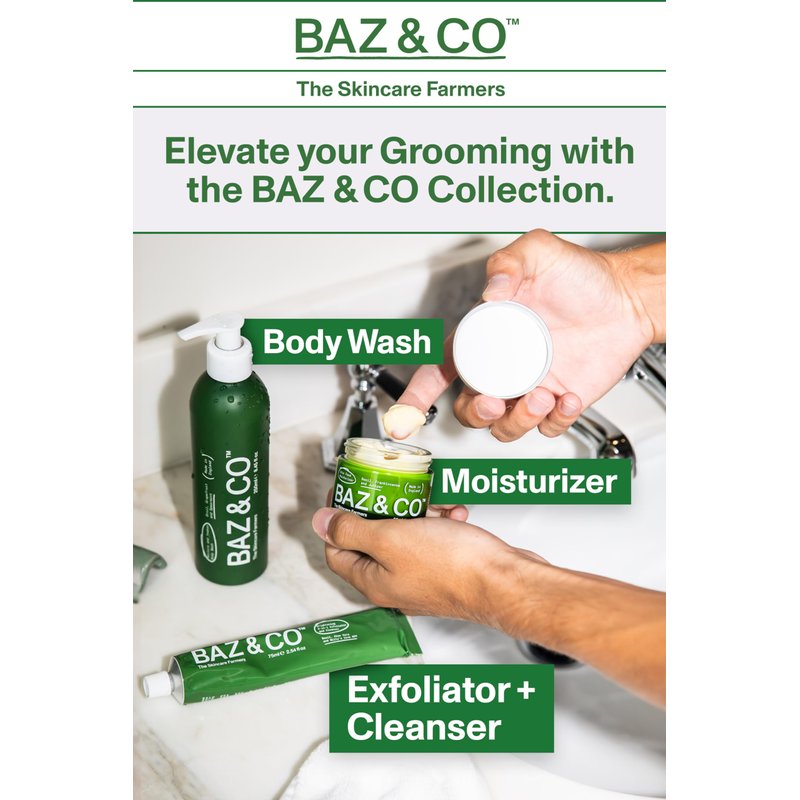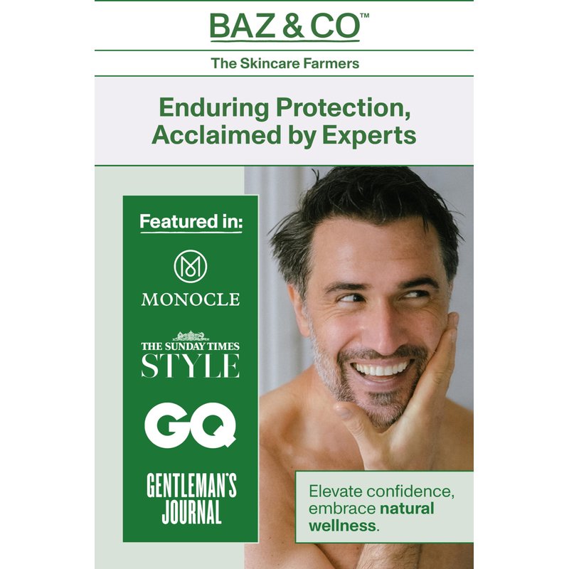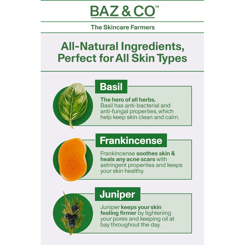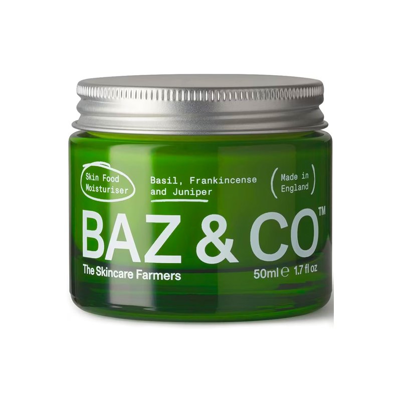 Our BAZ & CO Skin Food Moisturizer for Men is a nutrient-rich moisturizer specifically designed to meet the needs of men's skin. This luxurious cream helps replenish lost moisture, strengthen your skin, and protect it against environmental stressors throughout the day. BAZ & CO Moisturizer for Men is formulated with antioxidant–rich basil extract along with frankincense that works to help heal any scars or blemishes you may have, leaving your face feeling firmer and brighter. Additionally, juniper has been added to Skin Food Moisturiser for Men for its revitalizing properties, helping bring out the best in your complexion all day. Our moisturizer uses only natural plant ingredients - free from parabens and other harsh chemicals - this product contains no unnecessary additives that could further damage sensitive skin types or cause irritation to those prone to allergies. As an extra reassurance, we’ve included recyclable packaging so you can enjoy this product while doing something good for yourself and nature! You won’t regret adding BAZ & CO Skin Food Moisturiser into your skincare routine as it helps reduce signs of ageing.