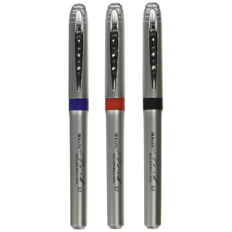 BAZIC York Asst. Color Jumbo Rollerball Pen w/ Grip (3/Pack)