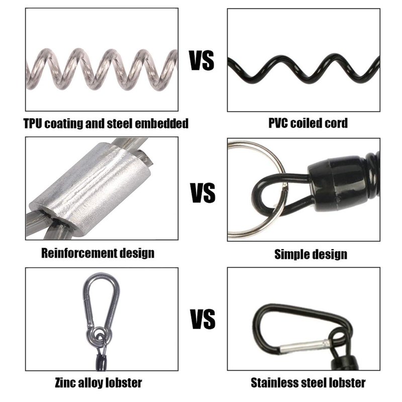 - 【 Heavy Duty Retractable Lanyards】 Our Coiled lanyard is made of Steel wire with TPU rubber plastic coating, there is a zinc alloy Locking Carabiners which are Anti-rust, anti-corrosion on each end strong enough to withstand heavy duty.