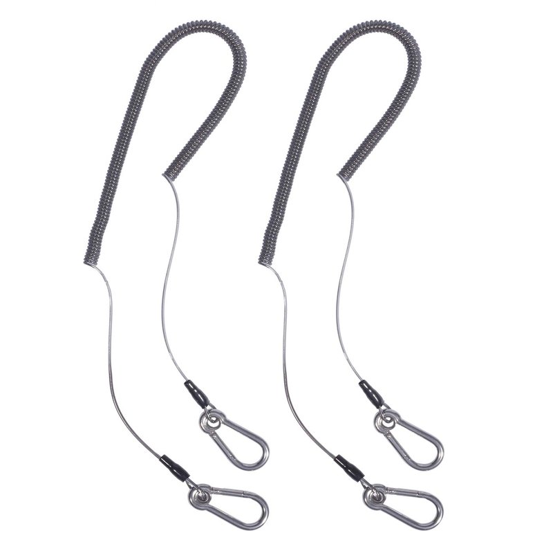 BB Hapeayou Retractable Coil Lanyard with Carabiner (2pcs) Safety Long Coiled Tether for Tools/Rods/Fishing Tackle (Black)