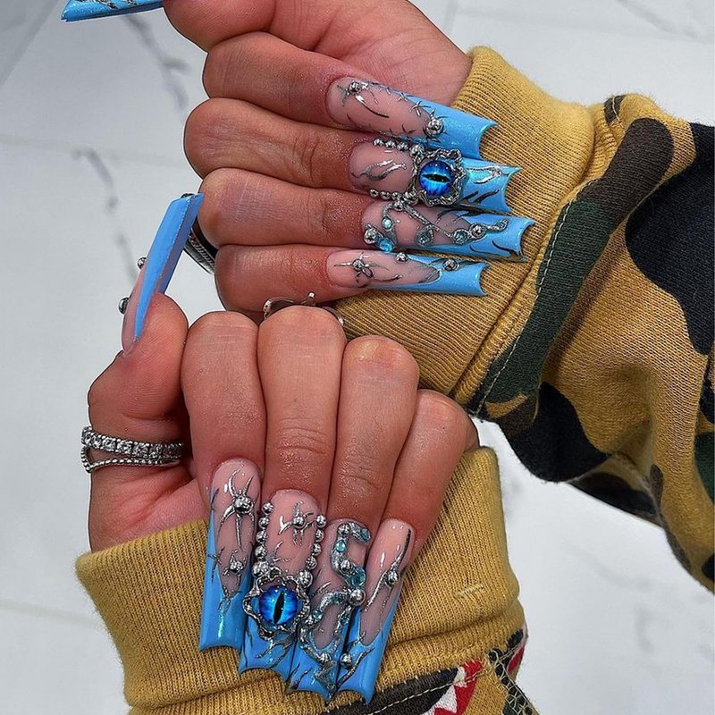 - ✔️3D Nail Charms Design:The evil nail charms are covered with different color beads.They are made of high quality alloy , silver nail charms grain clarity, not easy to fade. You can apply these cute eye and cross nail charms to decorate your nails.