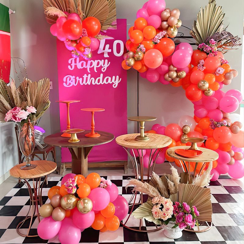 - SET INCLUDES:73Pcs Color balloons:12 inch orange (20 Pcs),12 inch pastel pink (20 Pcs),12 inch hot pink (20 Pcs),12 inch confetti (10 Pcs),with balloon archs kit accessories:Balloon chain 1 Pcs,Dispensing 1 Pcs,Ribbon 1 Pcs.