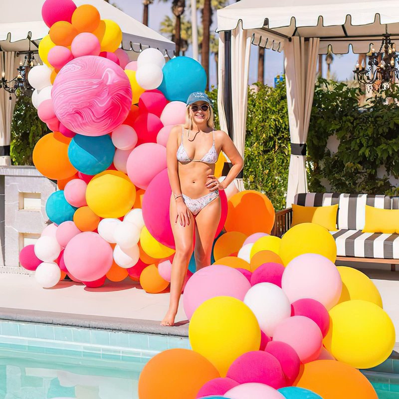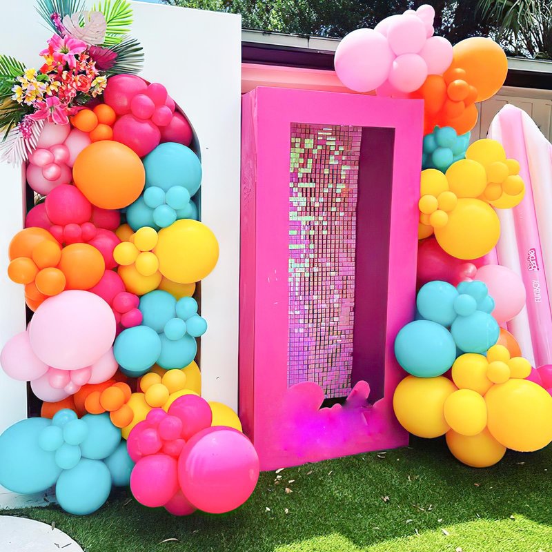 - Colorful Design: Tropical balloon arch kit comes in hot pink, yellow, orange, teal blue and pastel pink colors.
