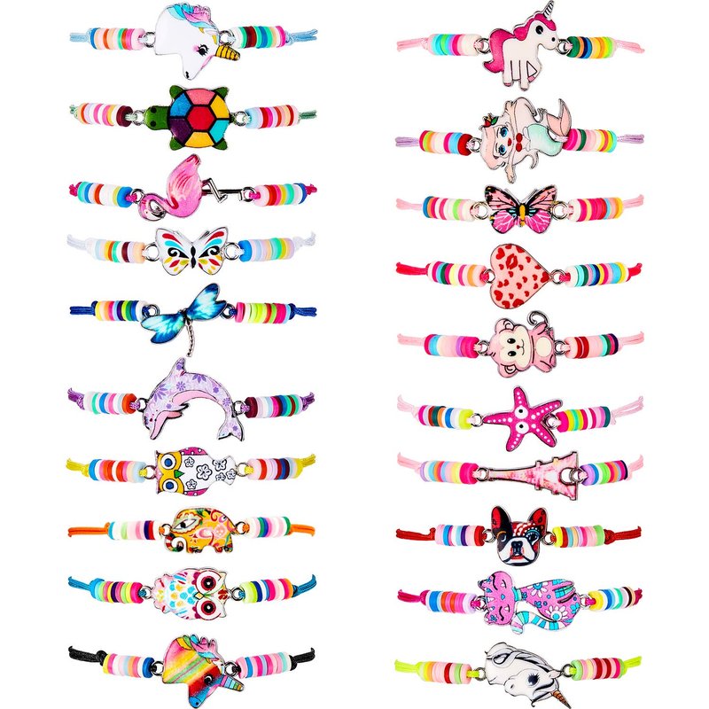 20 Pieces girls women bracelets jewelry animal pendant unicorn owl cute bracelets adjustable woven friendship bracelets multicolor beaded bracelets for prize pretend play party favors