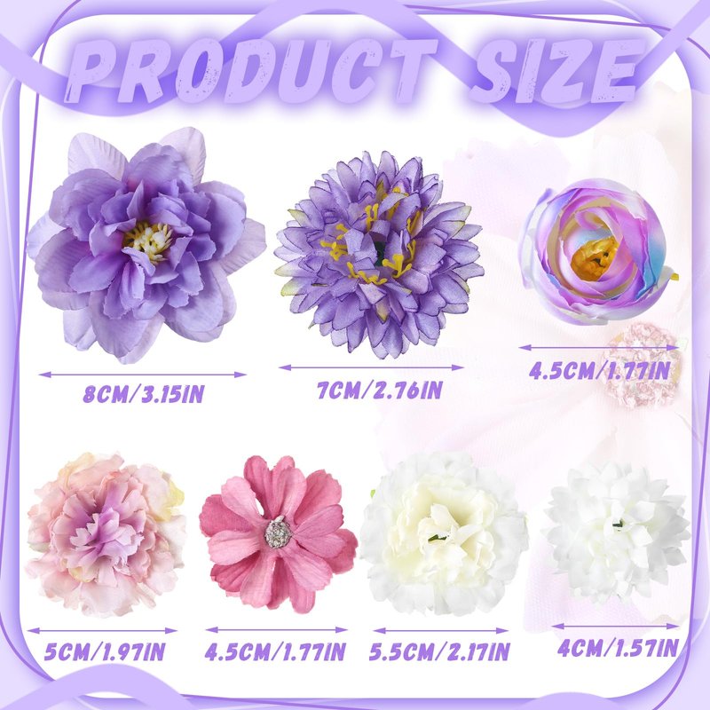 BBTO 21 Pieces Flower Hair Clip Rose Hair Clips Hair Barrettes for Women Flower Hair Accessories Boho Bride Claw Clip Hairpin Brooch Pin Headpiece for Girls Wedding (White, Purple)