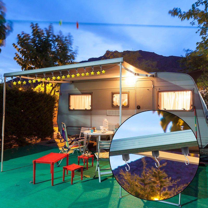 - Easy to use: the awning camper light accessory holders are easy to install and remove, you could directly hang them on somewhere you like, which can slide into the RV sunshade awning roller channels automatically, and you also can hang something on the hooks directly without taking much time