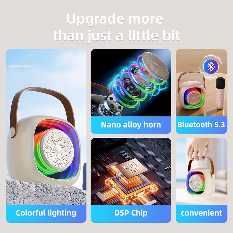 - Mini Portable karaoke Machine for Kids: Lightweight only 670g(3.54*2.55*3.0 inch)which make it easy to bring the party with you wherever you go.