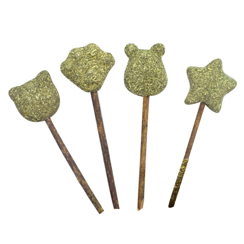 BCOATH 4pcs Chew Toys Kitten Treats Pet Toys Cat Treat Cat Nipp Cat Treat Toys Wooden Green Cat Catnip Ball Cat Sweet Lollipop Cat Toy Cat Grass Molar Toy Ball Kitten Teething Toys Cat