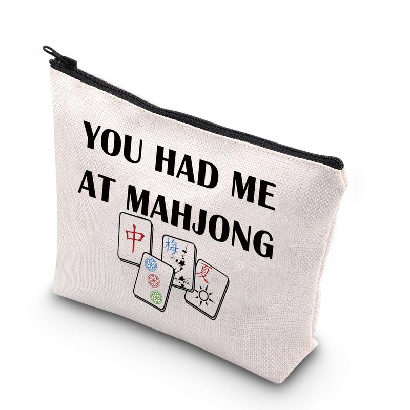- Bag with Words: YOU HAD ME AT MAHJONG. Great mahjong lucky bag for mahjong lover, mah jongg fans. If you are looking to get a Mahjong themed bag, get one with a funny saying like this.