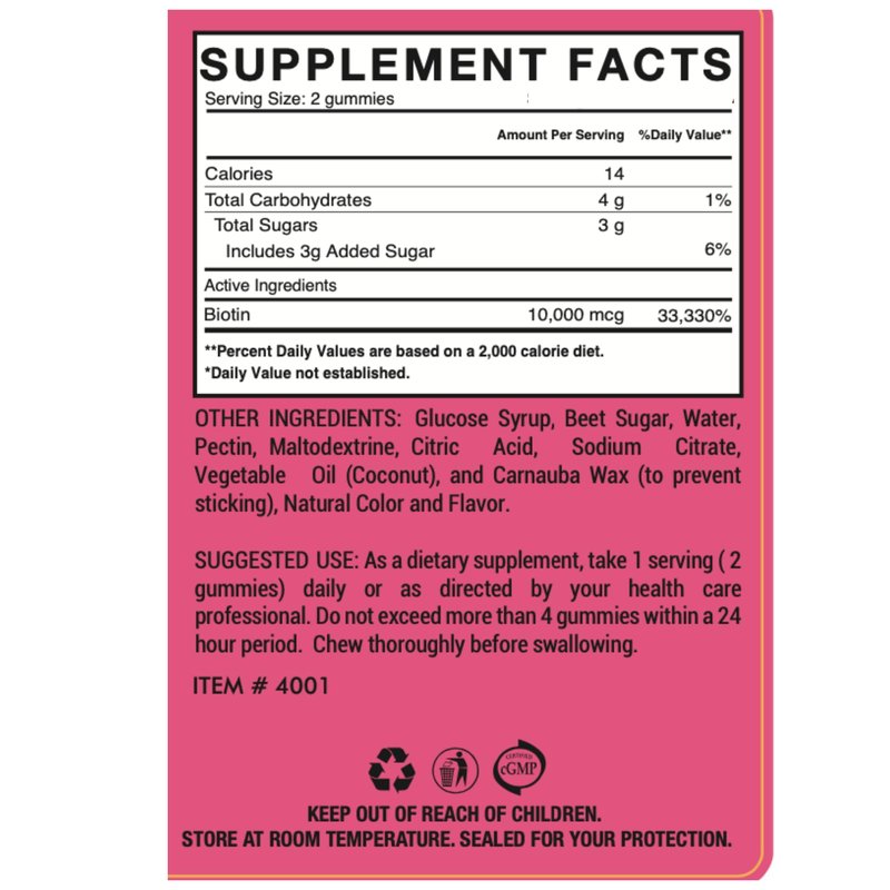 Be Happy Be You Biotin Gummies. Each tasty, strawberry-flavored dose delivers 10,000mcg of high-potency biotin, formulated for fast absorption so your body gets what it needs—quickly and effectively. Designed for men and women, this daily beauty supplement is vegan-friendly, pectin-based, and proudly made in the USA in a GMP-certified facility. Free from gluten, dairy, artificial colors, and preservatives, our clean formula supports hair and nail health without compromise—just real ingredients that deliver real results.