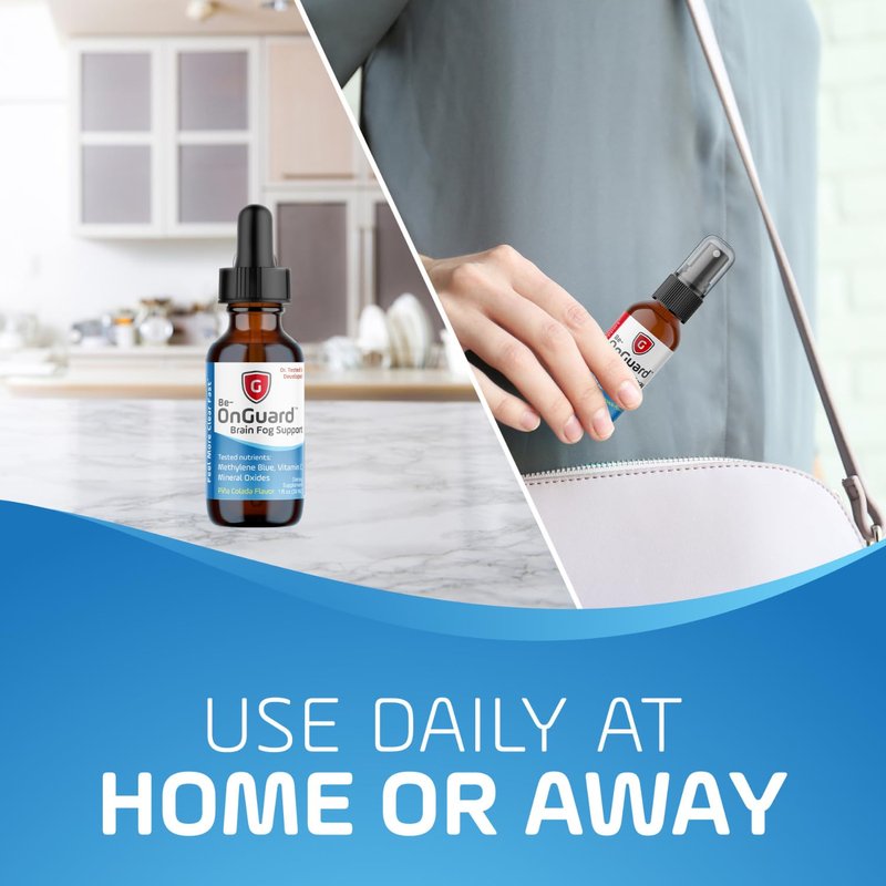 Be-Onguard Brain Fog Supplement - Methylene Blue with Vitamin C - Memory Booster - Improves Cognitive Function and Focus - Clear Thoughts and Reduced Fog - Liquid Supplement
