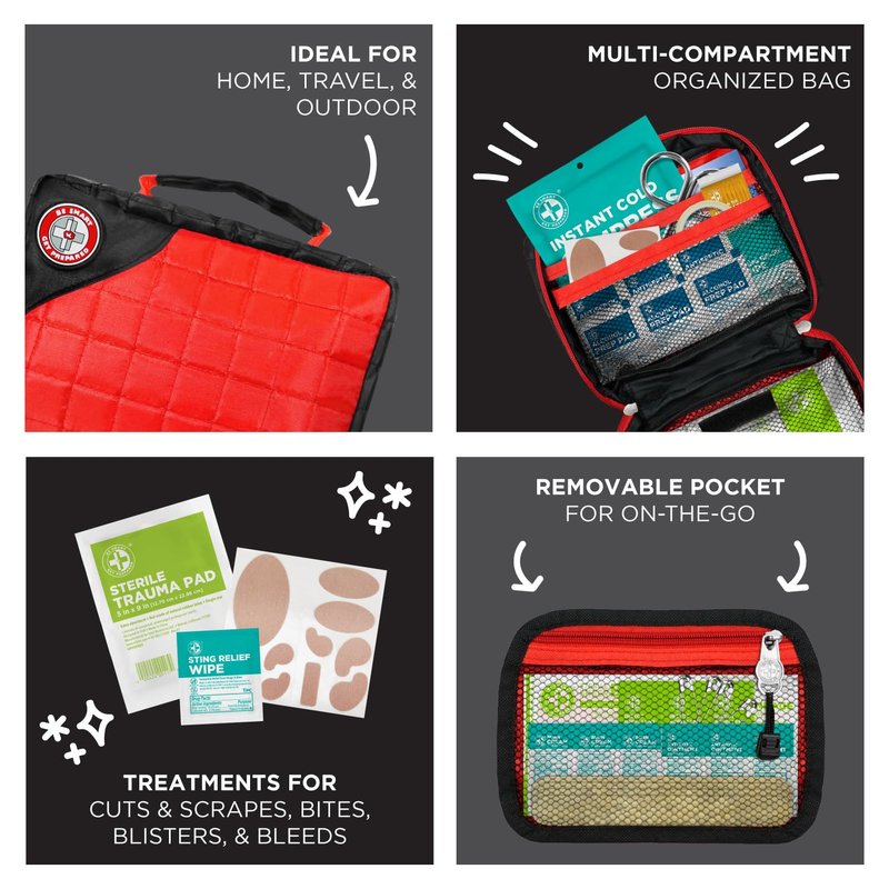 Be Smart Get Prepared Complete First Aid Kit with Bonus Removable Mini First Aid Kit - 200 Pieces - Designed for Home, Outdoors, Sports, Travel, and Leisure - Compact & Portable
