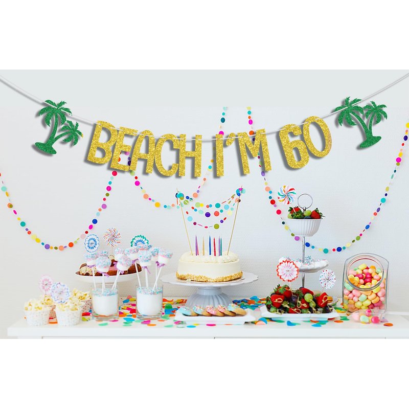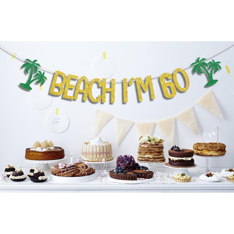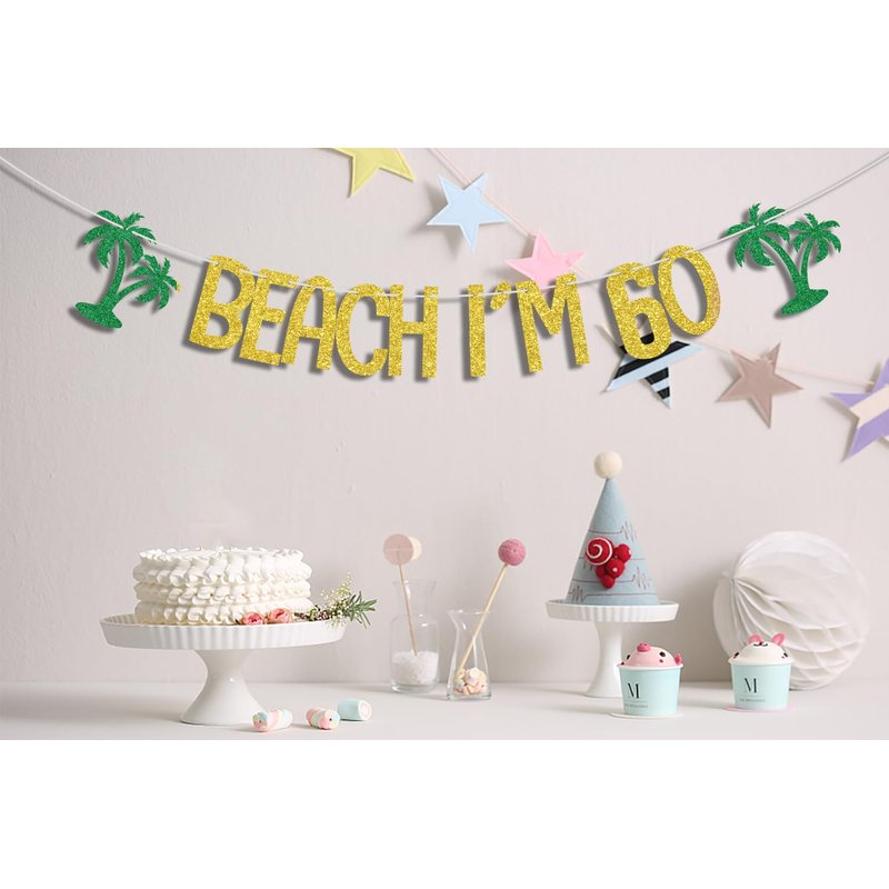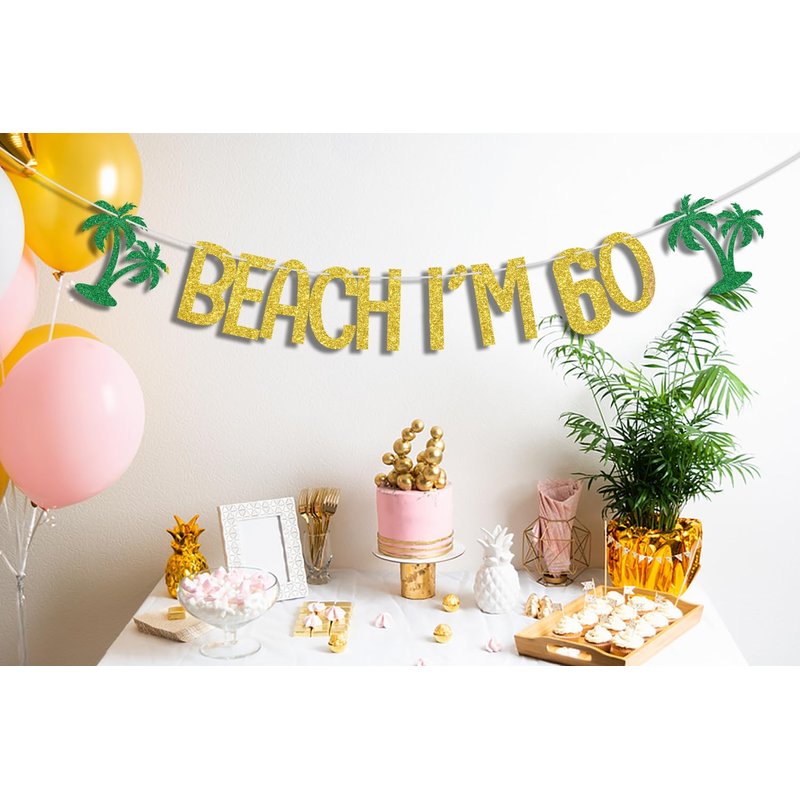 - Beach I'm 60 Banner: Beach I'm 60 slogan, very suitable for 60th birthday party.