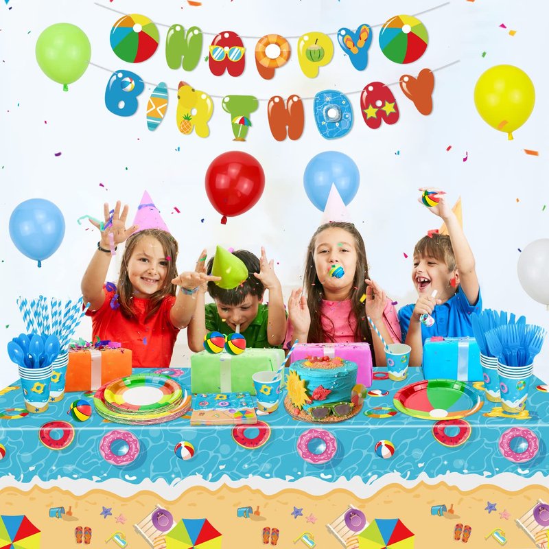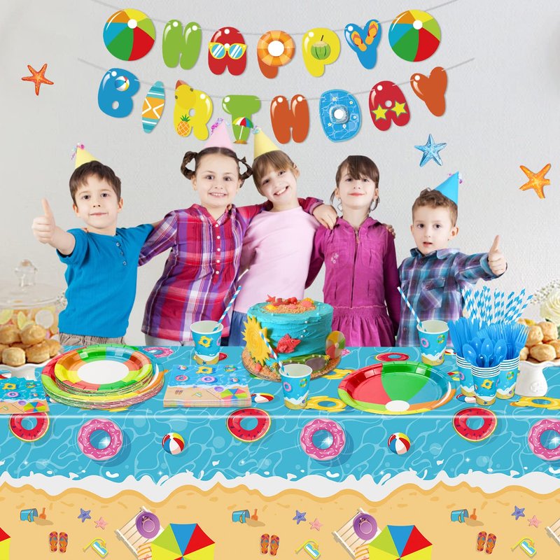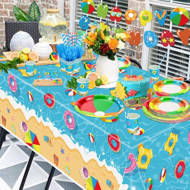 - EASY TO CLEAN - Enjoy more time with your friends and family at your party with this pool party set. After the party is over, collect the tablecloths along with the other dinner plates and throw them away, they won't easily cause pollution this month. Save time and be effortless.