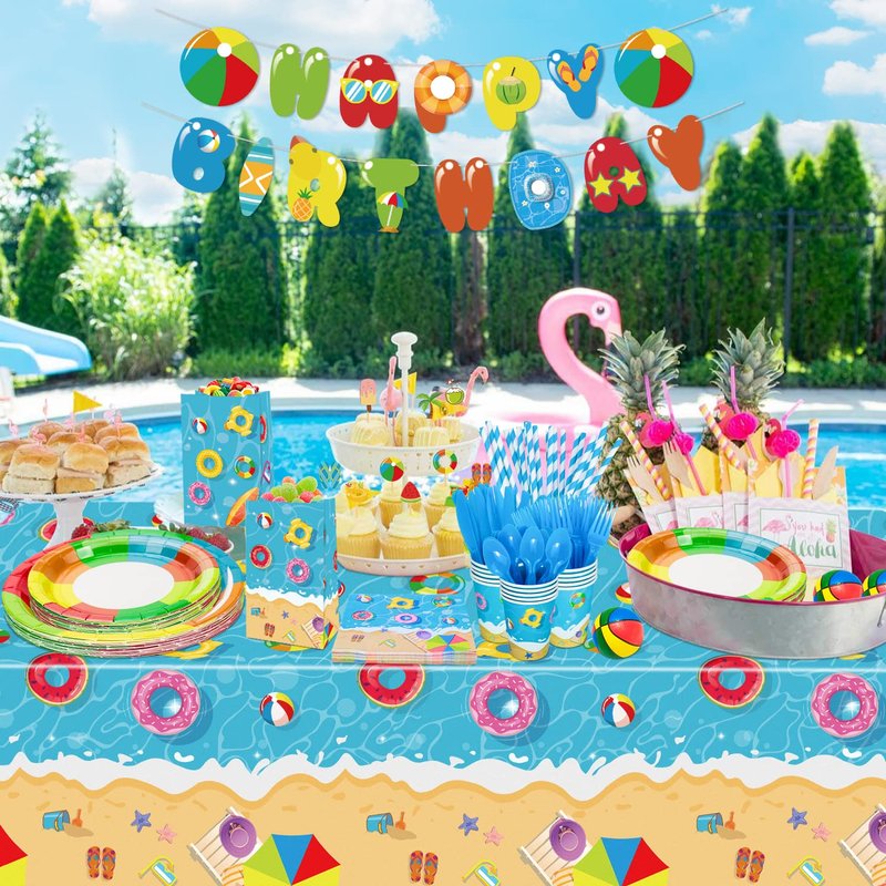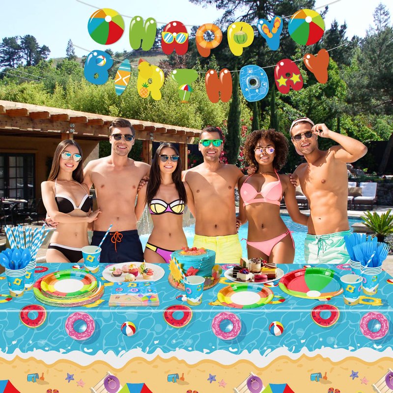 - WIDE OCCASION - Ideal for beach parties, pool parties, summer parties, swim parties, surfing parties, birthday parties, etc. Pool birthday party decorations set perfect for every occasion will be very popular at your party.