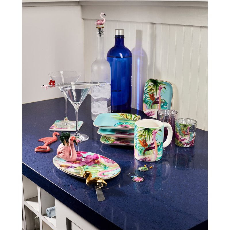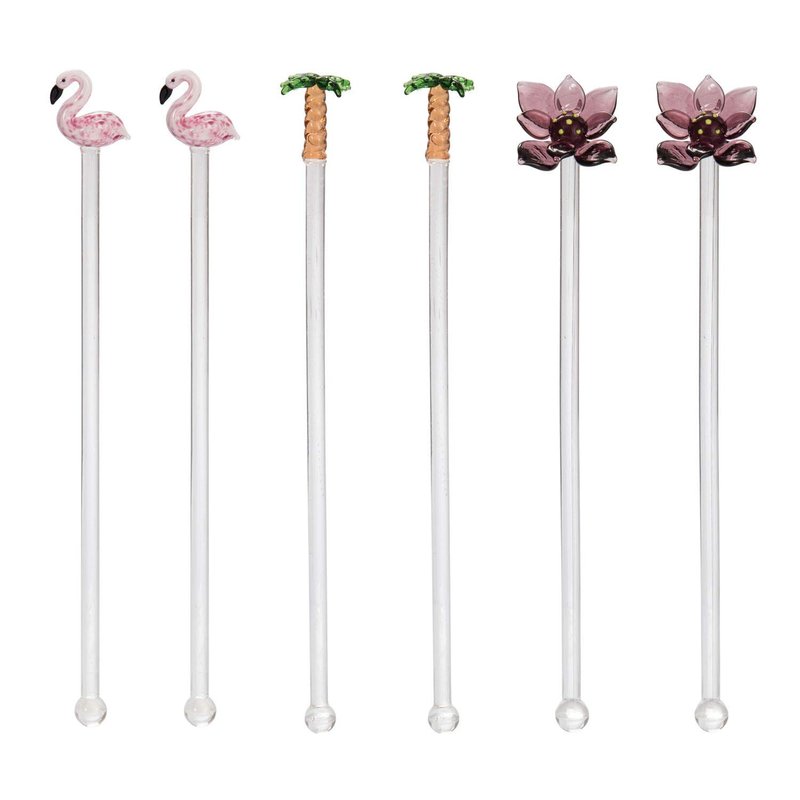 Beachcombers Flamingo Palm Tree Lotus Flower Set Of 6 Reusable Glass Drink Stirs Tropical Cocktail Bar Beach Party Swizzle Sticks Pink