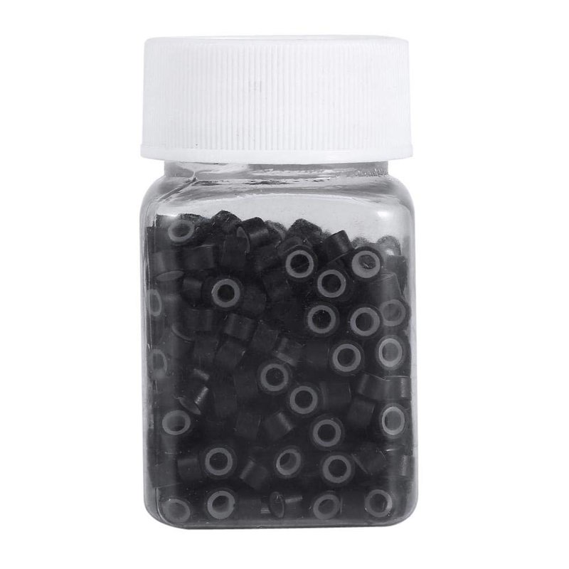 Bead Hair Extension Tools, Silicone Micro Link Rings, 1 Bottle/Set 500Pcs 5mm Lined Beads 5 Colors Optional Silicone Lined Links Beads Linkies for Hair Extensions (Black)