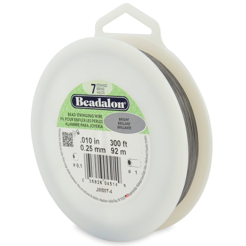 Beadalon 7 Strand Stainless Steel Bead Stringing Wire, 0.010 in / 0.25 mm, Bright, 300 ft / 91 m