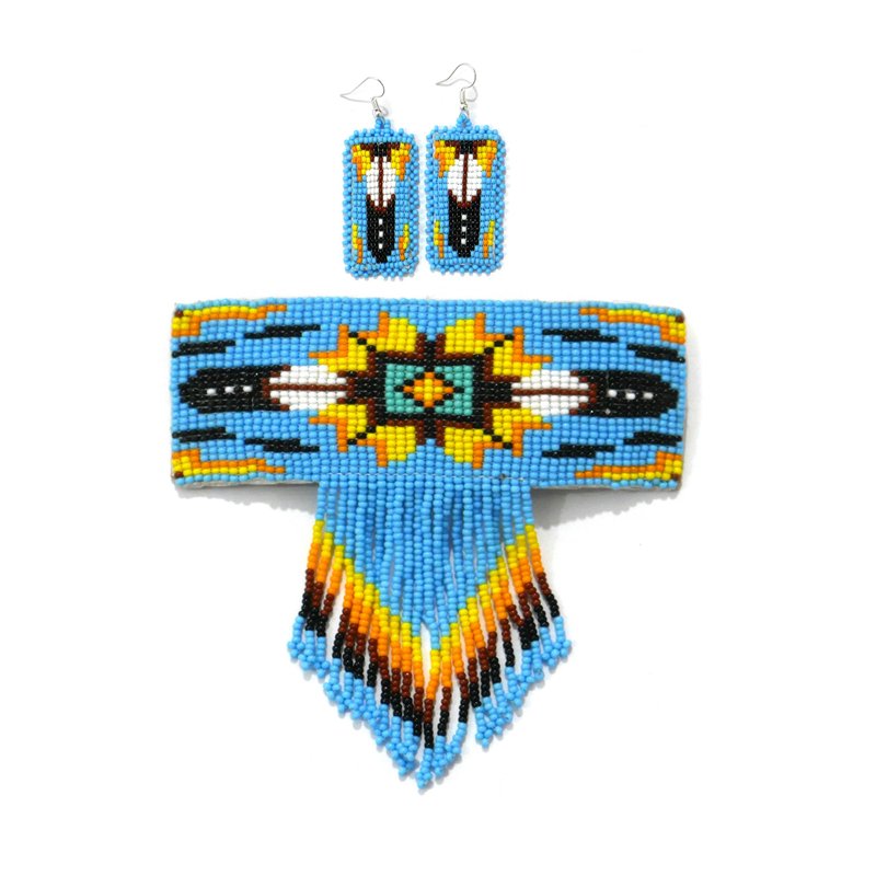 Beaded Hair Clips Native American Style Handmade Collection (Skyblue With Earring)
