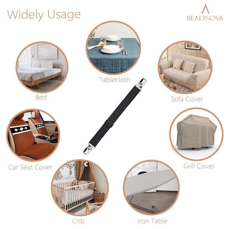 - WIDELY USE: Our bed sheet fasteners fit with fitted sheet and flat sheet for sizes Twin, Twin XL, Full, Full XL, Queen, King & even up to California King sheets. Use these adjustable mattress corner clips on sofa cover, couch seat cover, car seat cover, chair cover, tablecloths, ironing board covers, slipcovers and so one to make your life easier.