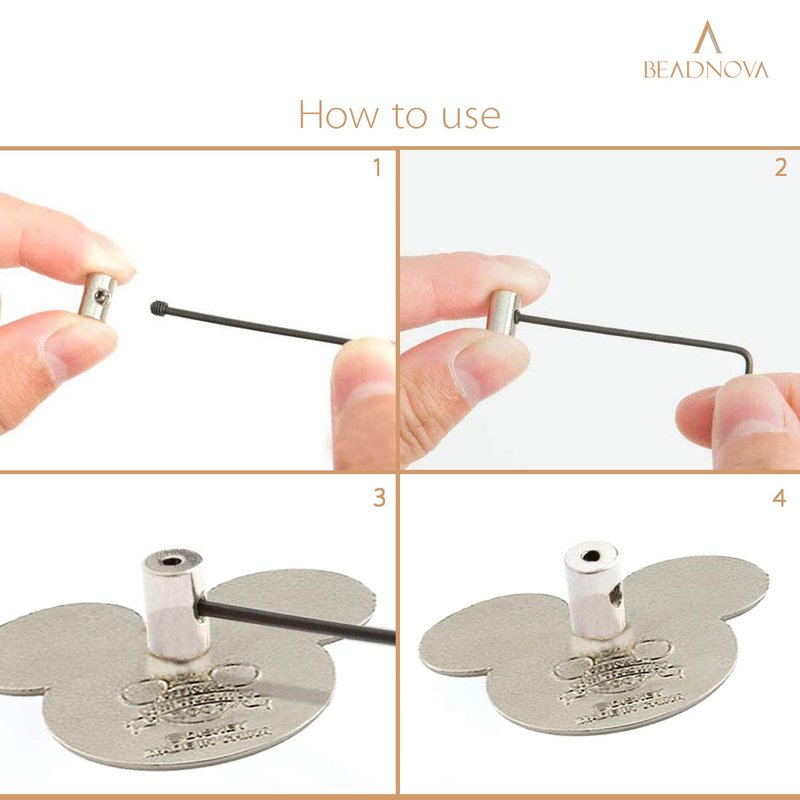 - EASY TO USE: Put a pin keeper in the back of the pin. Use the provided Allen wrench to secure the pin and pin back tight. Just two easy steps to attach the pin lock, and you never have to worry losing your loving pins.