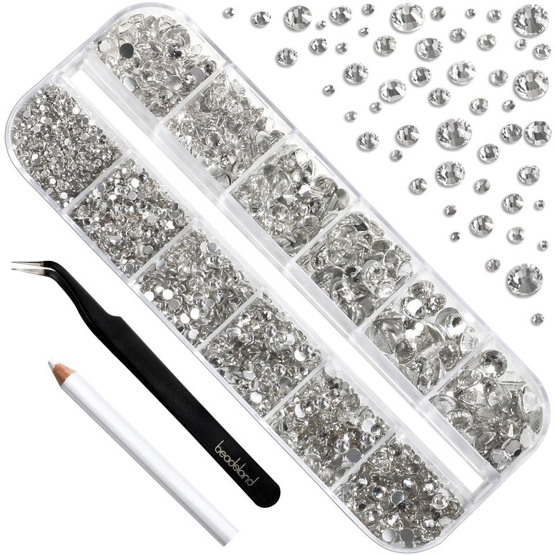 Beadsland Rhinestones for Makeup,8 Sizes 2500pcs Crystal Flatback Rhinestones Face Gems for Nails Crafts with Tweezers and Wax Pencil,Clear,SS4-SS30