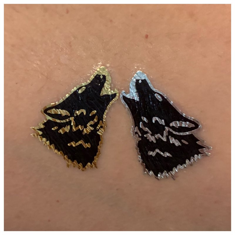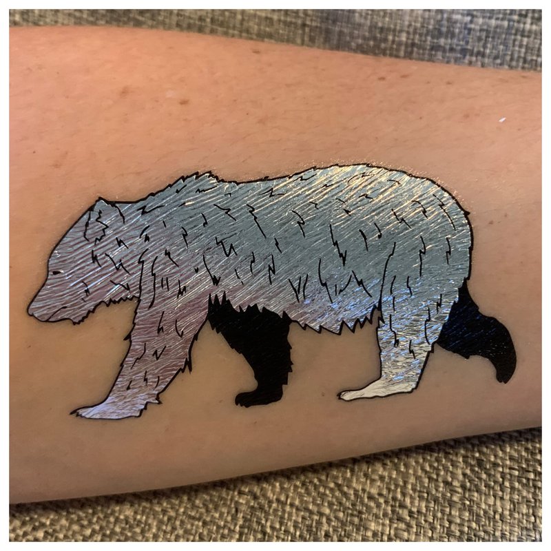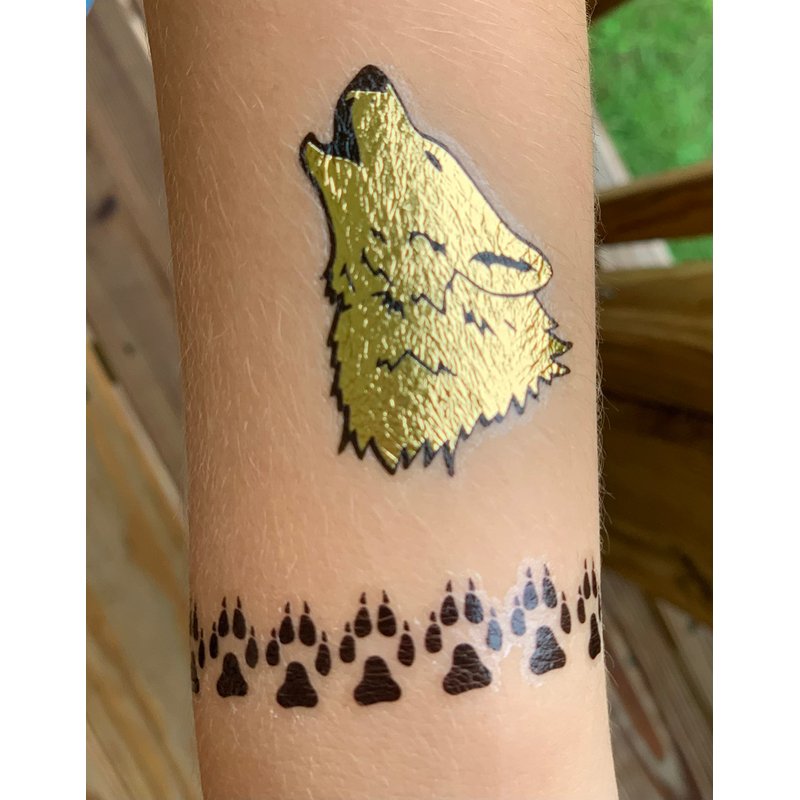 - Super fun designs: Silver, gold and black tattoos featuring bears, bear cubs, howling wolves, bear paws, wolf paws as well as tattoo bracelets.