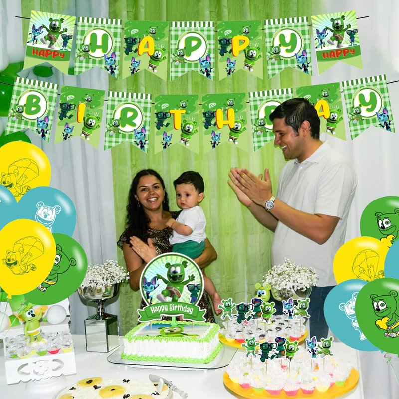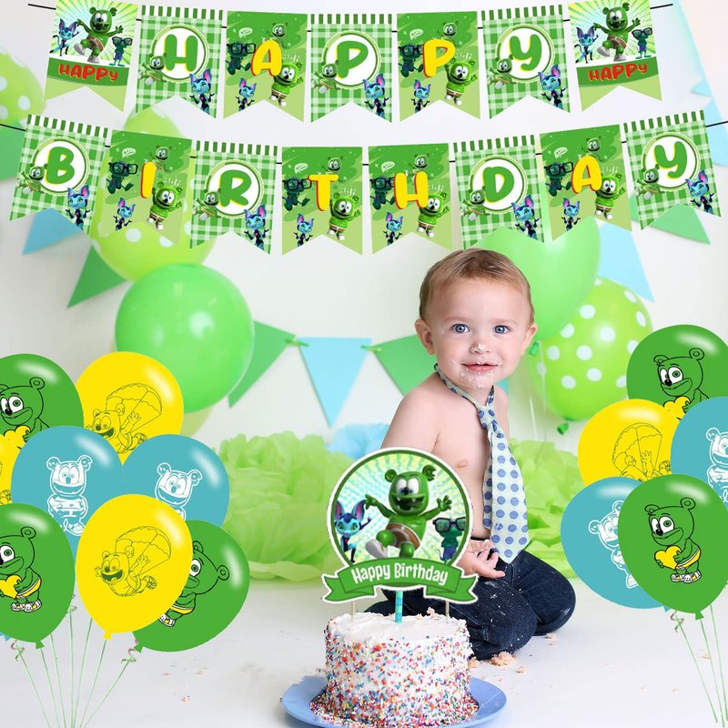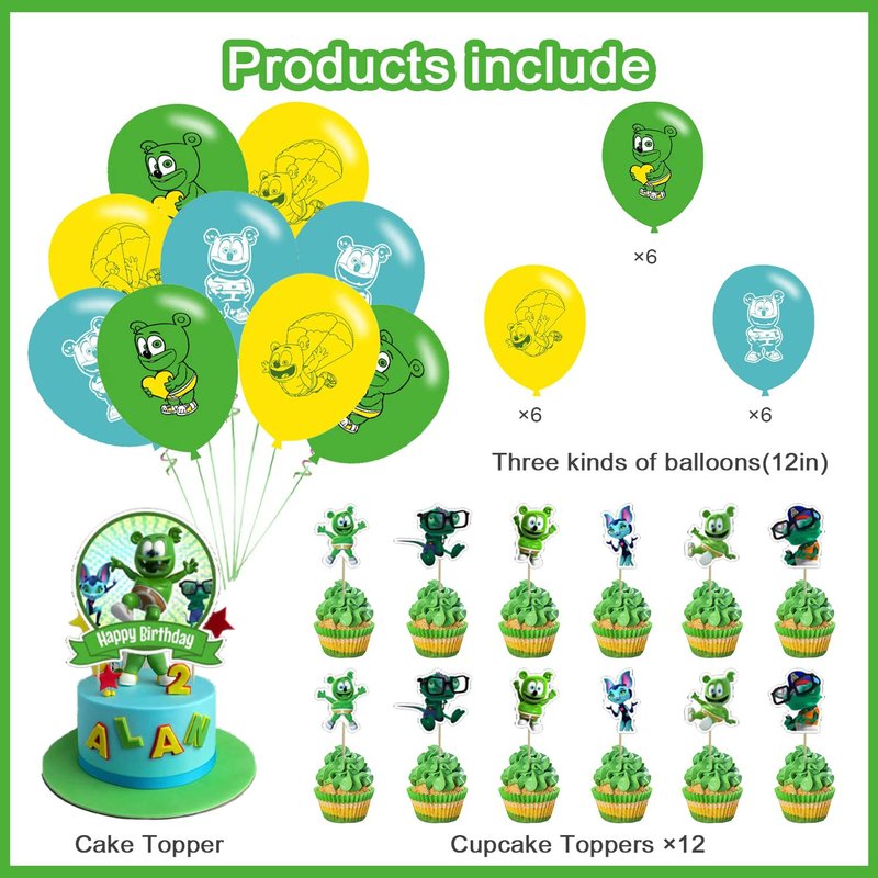 - ☆Bear Party Supplies: Gummy Bear Birthday Party Decorations set with 1 piece of happy birthday banner,18 pieces of balloons (3 styles), 1 piece of happy birthday cake topper,12 pieces of cupcake toppers. Our full set of the Gummy Bear theme birthday party supplies will add surprises to you, your family and friends.