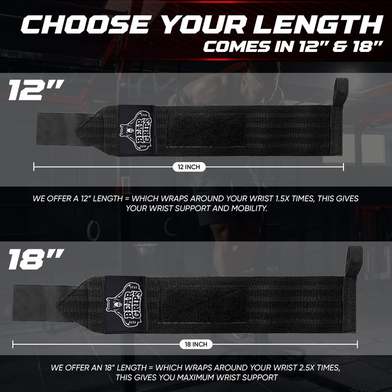 Bear Grips Wrist Wraps for Weightlifting | Weight Lifting Wrist Straps for Weightlifting | Extra Strength Gym Wrist Wraps | Two Wrist Wrap Per Pack | 12” & 18” | Lifting Wrist Wraps for Men & Women