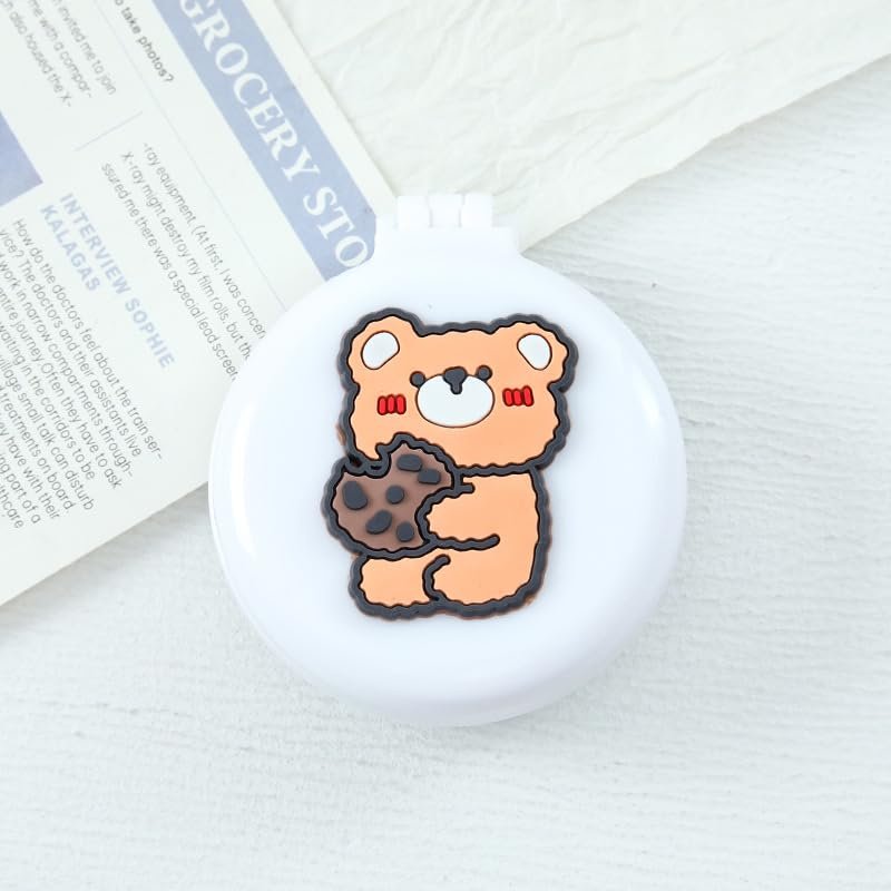 Bear Mini Hair Brush for Purse, Pocket Hair Brush with Mirror for Girls, Cute Portable Foldable Travel Mirror Hair Brushes Round Hair Comb Compact Massage Comb, Hair Brushes (2H977)
