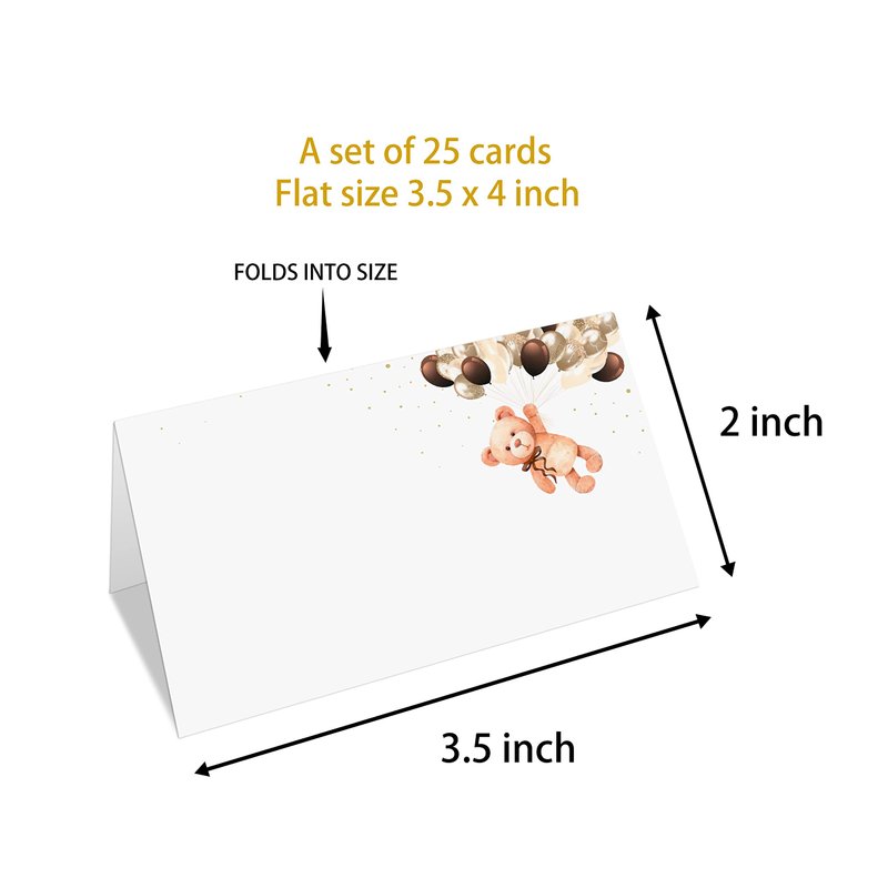 Bear Place Cards Tent Style Cards – 25 Cards per Pack – shower Bear Party Supplies Decorations(TAIKA-012)