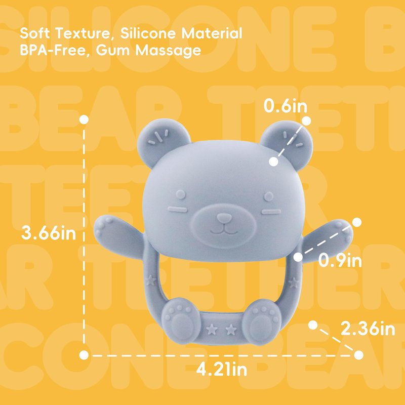 Cute bear designs that are fun and engaging, baby chew toys are designed for babies to chew in different directions to relieve teething pain and help stimulate gum and tooth growth.