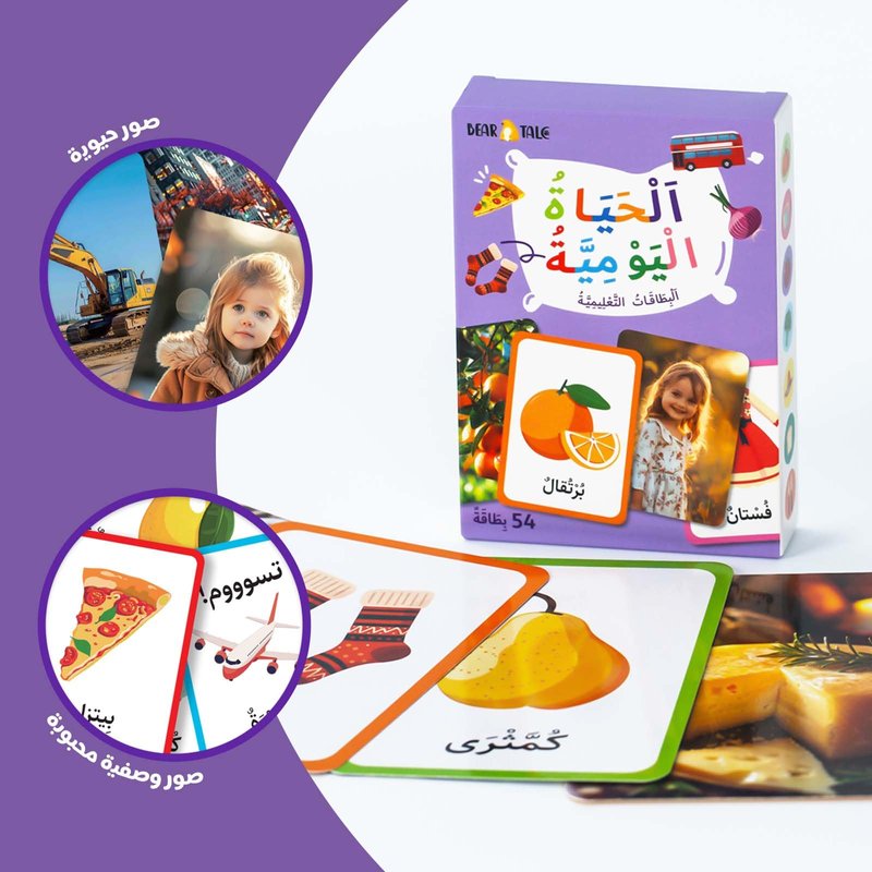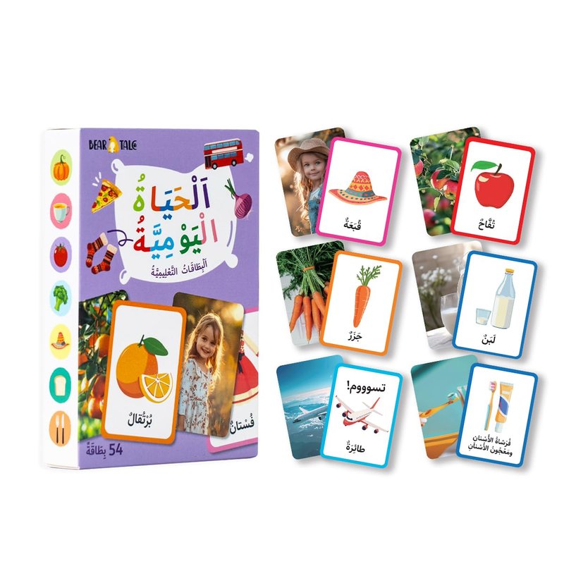 Bear Tale 54 Arabic Alphabet Flash Cards for Kids, Daily Life Theme, Double-Sided Flashcards with Colorful and Bright Images, Arabic Learning Educational Toys Gifts for Boys and Girls