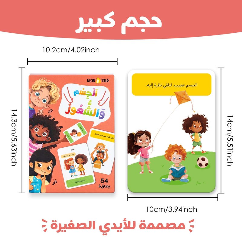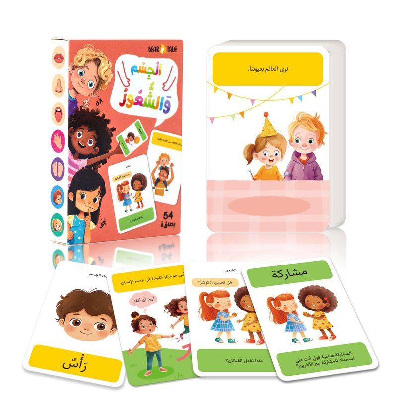 - 【Body Parts Flash Cards for Toddlers】: The arabic alphabet flashcards set includes 54pcs double-sided flash cards, covering 27 body parts and 27 emotions. Helping children gain some knowledge to learn the body parts, recognize each emotion correctly, thus developing more understanding of different body parts. Bear tale flash cards are great tools for arabic learning for kids to know themselves better.