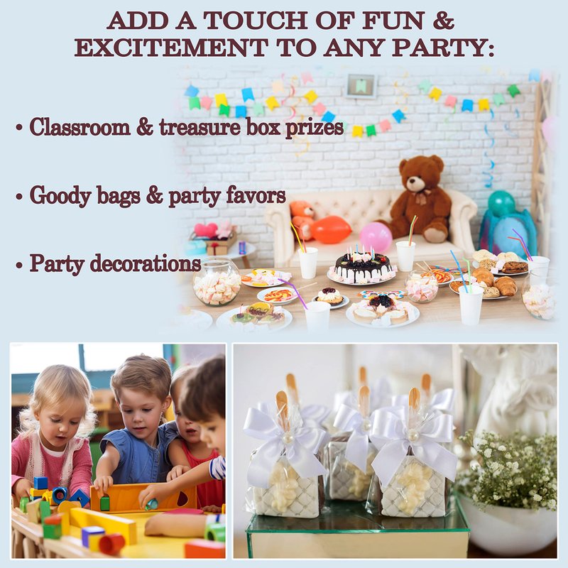 - GIFT & GOODIE BAG FILLER – Cute as the small party gift, birthday gift for kids, or as party favor. The good idea is to use these toys as a birthday cake topers for little kids, as a themed party cake topper.