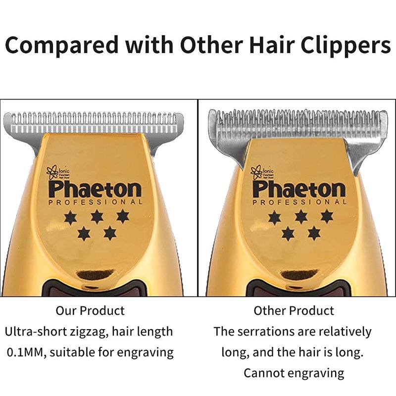 - HIGH PERFORMANCE -- Strong motor, high speed and low noise, stable and efficient for all kinds of hair. This cordless hair clippers for men is constructed with stainless steel T-blades for an ultra-smooth and close cut.
