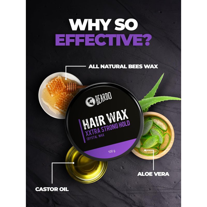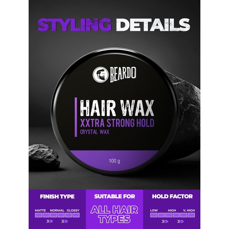 Beardo XXtra Stronghold Hair Wax, 100 gm | Crystal Hair Wax for Men | Glossy Finish | Hair Style, Shine | Extra Strong Hold Styling Hair Wax - 3.4Fl Oz