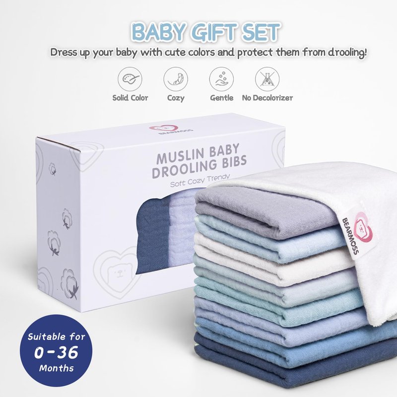 - 100% Muslin Cotton: Our Bearmoss muslin baby bibs are made with 100% cotton material that is soft and gentle for your baby's delicate skin, making them lightweight and breathable, also perfect for everyday wear.