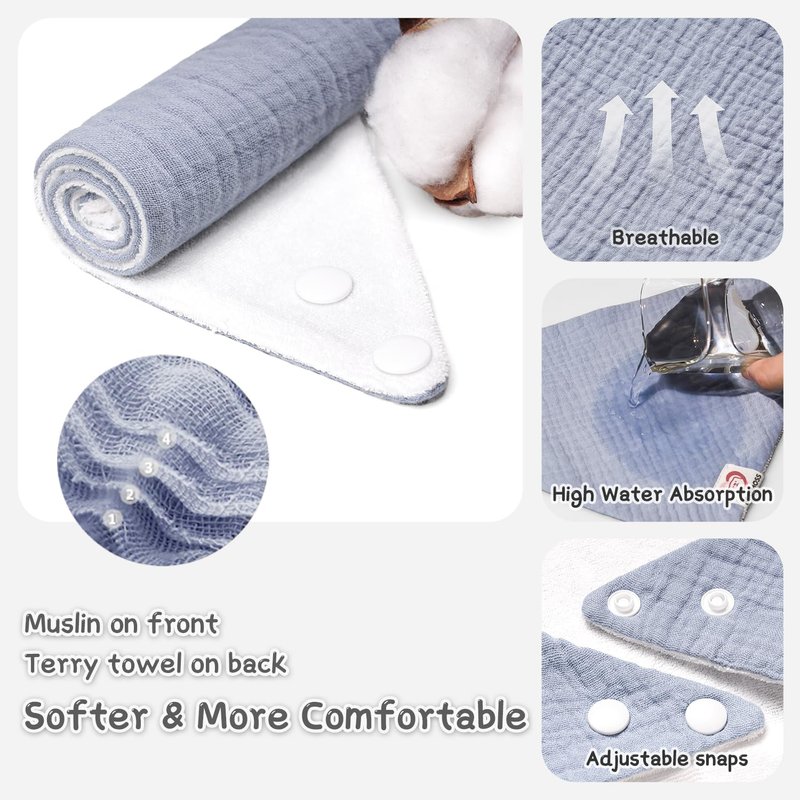 - Multi-Functional Usage: Triangular Muslin Baby Drool Bibs can be used as a burp cloth, teething bib, Washcloth, wipe bandana or even as a stylish accessory for your little one.