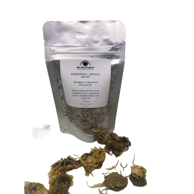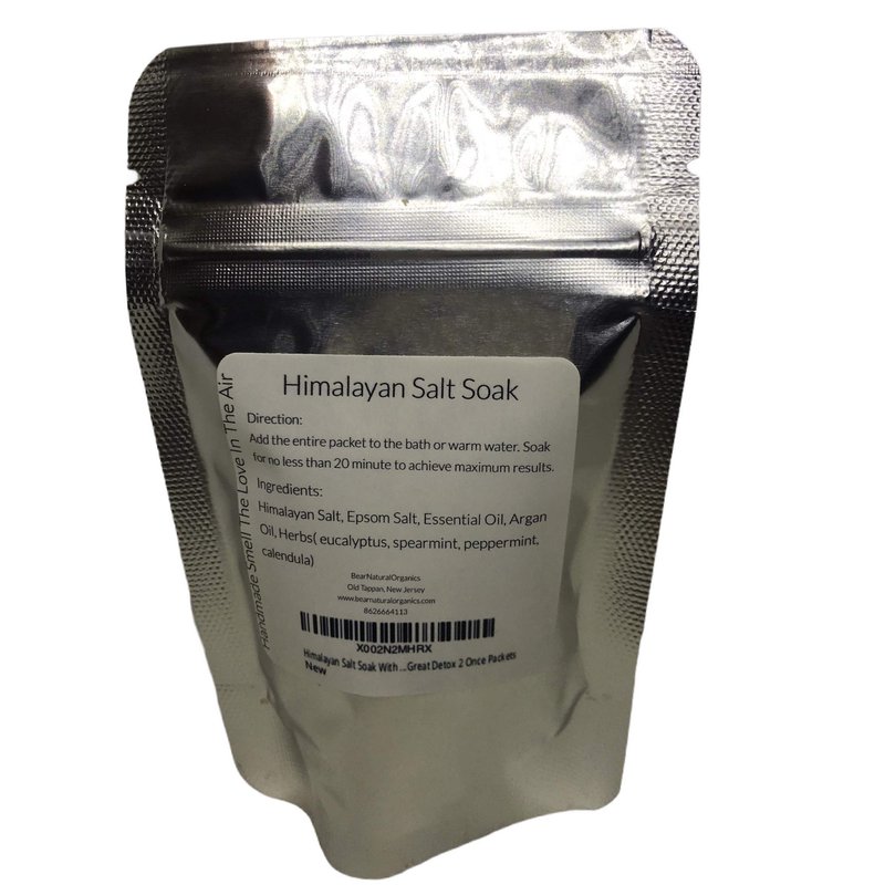 BearNaturalOrganics Himalayan Salt Soak With Eucalyptus and Spearmint For Energizing Muscle Relief Great Gift 8 Once Packets