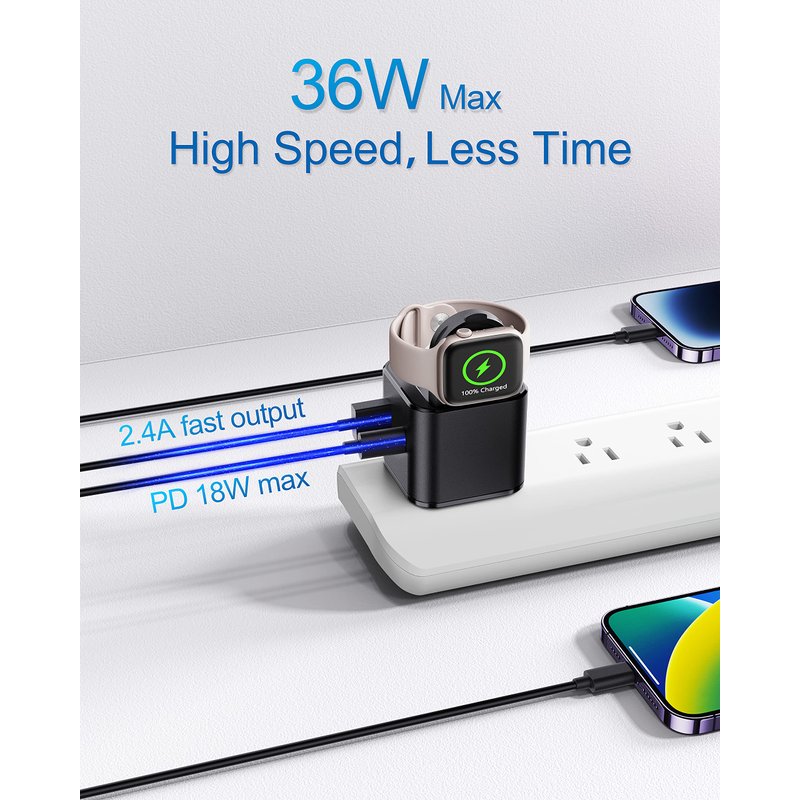 - 3-in-1 Charger Design: Our Charger Adapter consists of a USB-C port, a USB-A port & built-in Apple Watch Charging Cable. Allows you to easily charge different devices simultaneously while eliminating confusion when using different chargers & multiple devices!