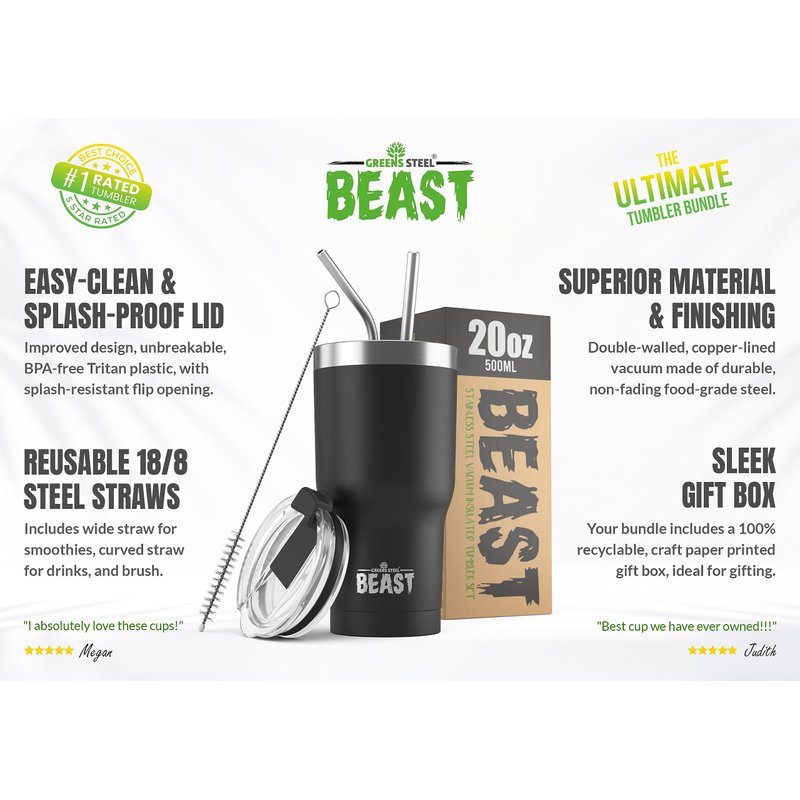 Beast 20 oz Tumbler Stainless Steel Vacuum Insulated Coffee Ice Cup Double Wall Travel Flask (Matte Black)