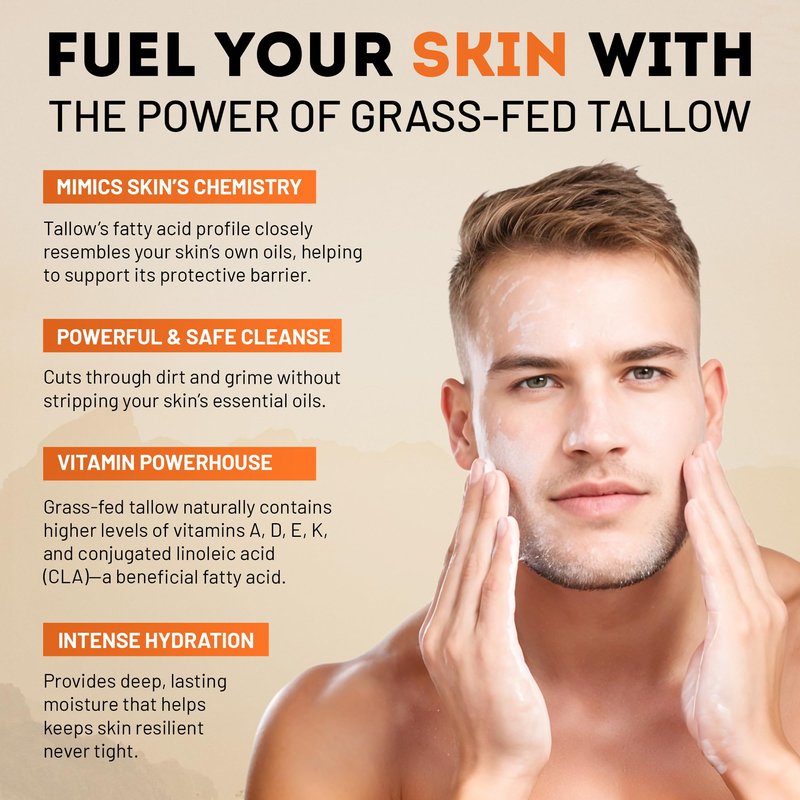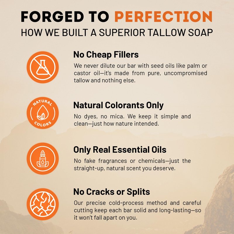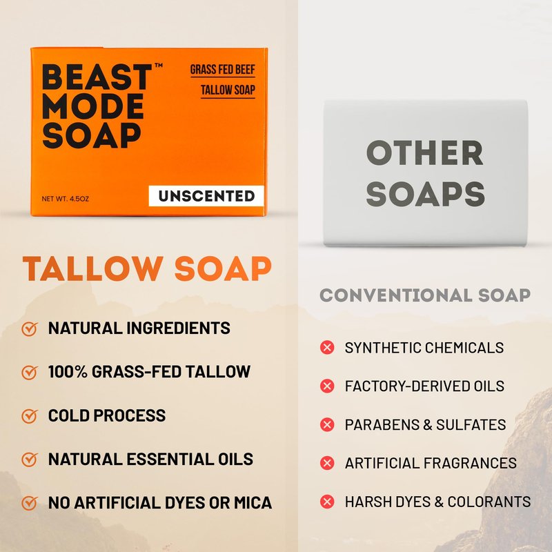 Beast Mode Soap for Men, Unscented, 2-Bar Pack – Minimal-Ingredient Grass-Fed Tallow + Water Bar Soap, Sensitive-Skin Safe, Handcrafted in USA
