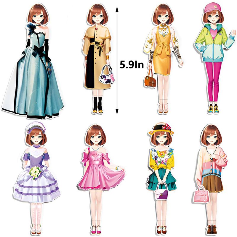 - 👗【DIY Magnetic Doll Dress Up & Easy Storage】Magnet outfit and accessory pieces are all magnetic, and girls can stick paper doll on magnetic refrigerator doors and whiteboards. At the same time, it is very suitable for use during travel. Travel magnetic toys can be carried with you, and their relatively small size can be easily stored in a box without taking up too much space.