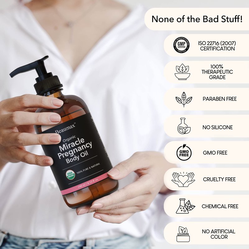 Beaumax Miracle Pregnancy Body Oil - USDA Organic Body Oil 240ml/8.12 fl.oz