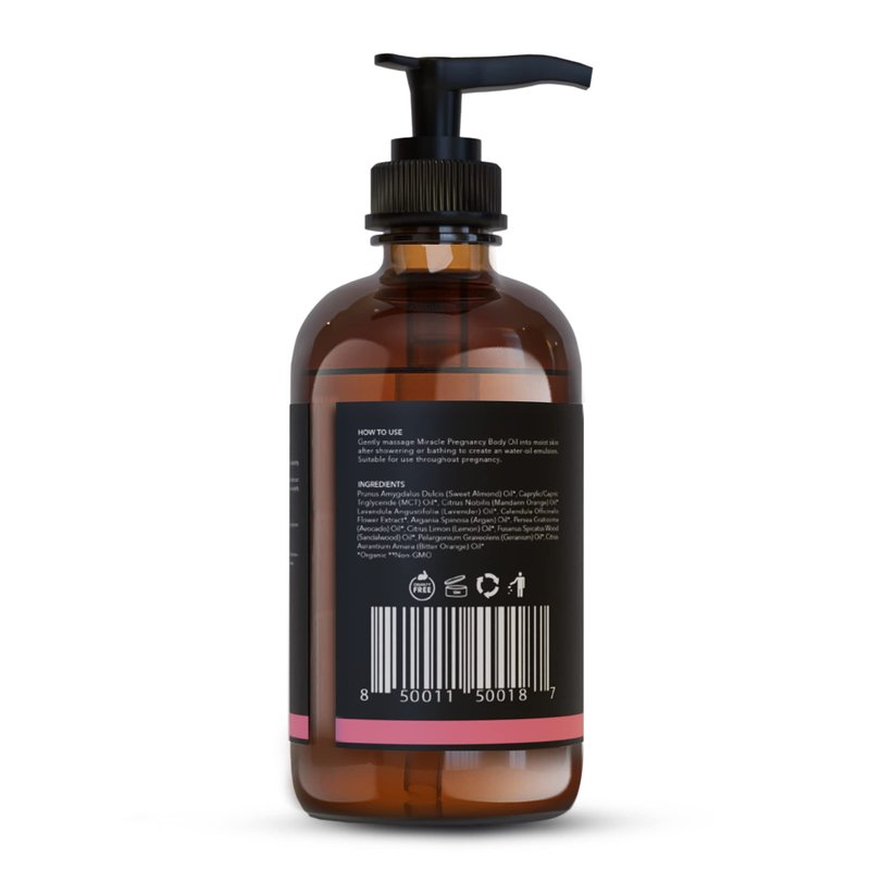 - ✅ BENEFITS - Our Organic Miracle Pregnancy Body Oil contains a unique blend of 4 nutrient-rich oils, specially formulated to support the healthy development of skin tissue during pregnancy. Its 100% natural and organic ingredients provide superior moisturization and hydration, leaving your skin feeling luxurious, nourished and glowing.