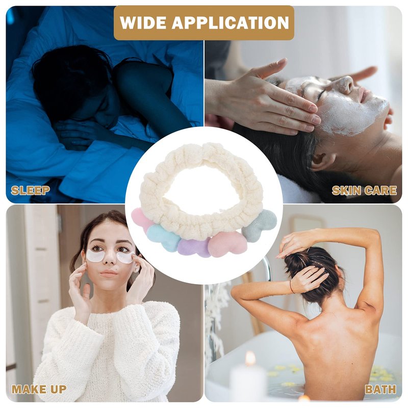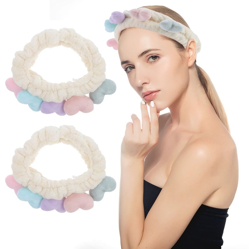 - Plush Spa Headband Cute Heart Coral Fleece Makeup Headband Soft Elastic Head Wrap Cosmetic Bow Hair Bands Women Facial Hair Scrunchies for Shower Gym