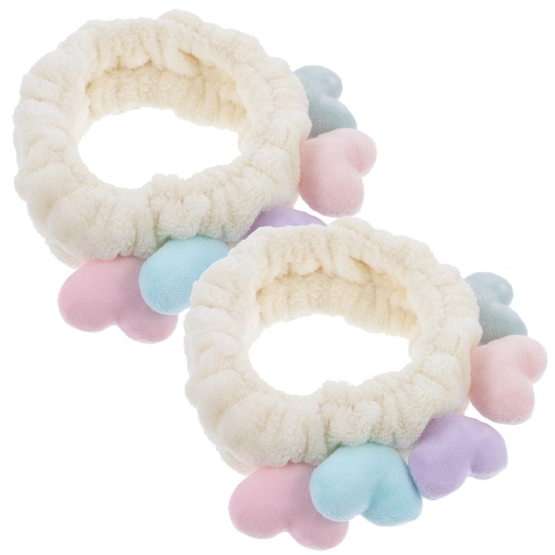 Beaupretty 2pcs Plush Spa Headband Cute Heart Coral Fleece Makeup Headband Soft Elastic Head Wrap Cosmetic Bow Hair Bands Women Facial Hair Scrunchies for Shower (White)