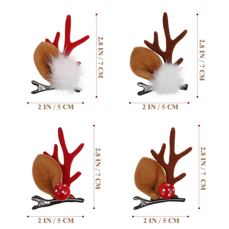Beaupretty 4 Pairs Christmas Hair Clips Christmas Antler Hair Clips Deer Antler Hair Clips Deer Horn Barrettes Christmas Hair Accessories for Women and Girls