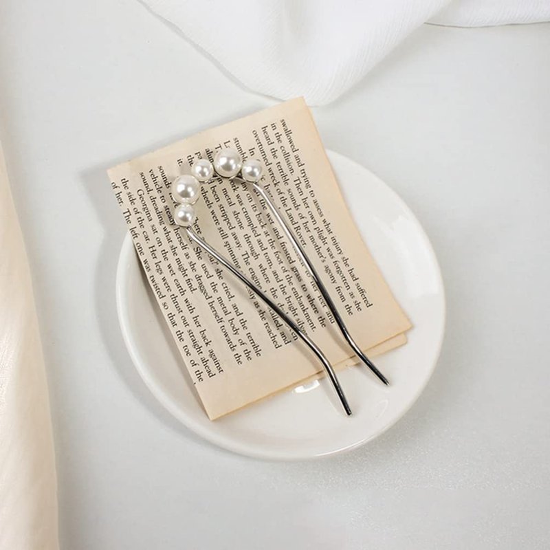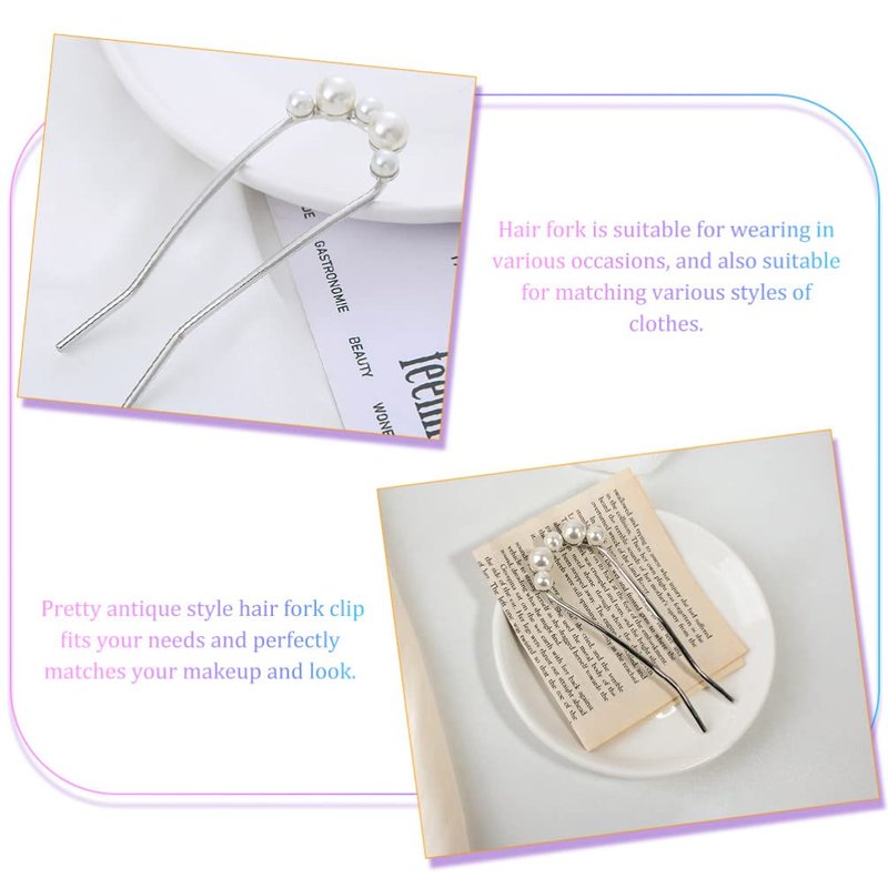 Beaupretty 4pcs French Hair Pin Pearl Hair Forks U Shaped Hair Stick Metal Womens Hair Clips Hair Accessories for Bun(Silver)